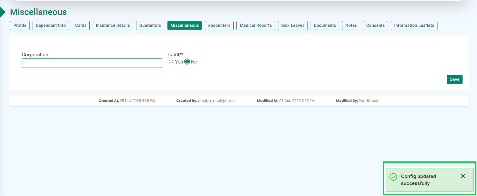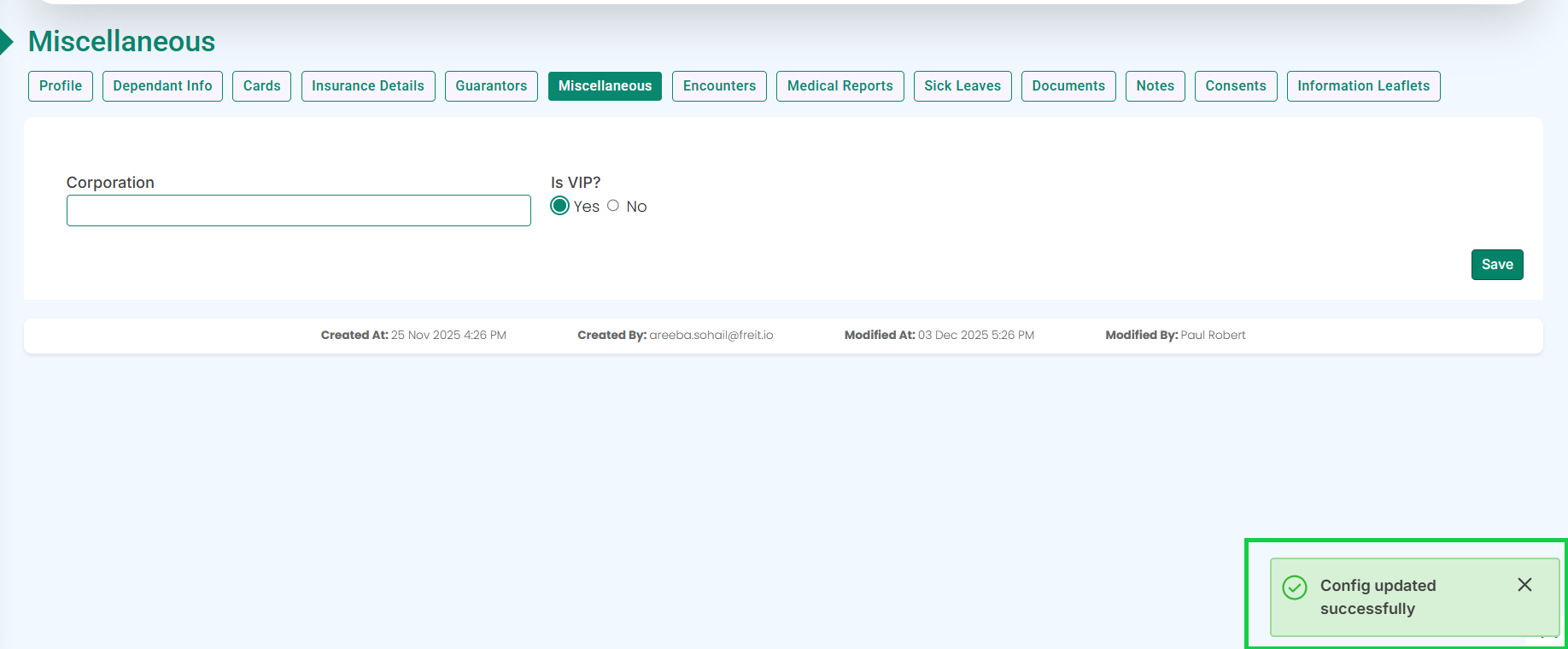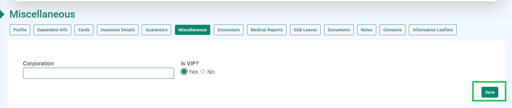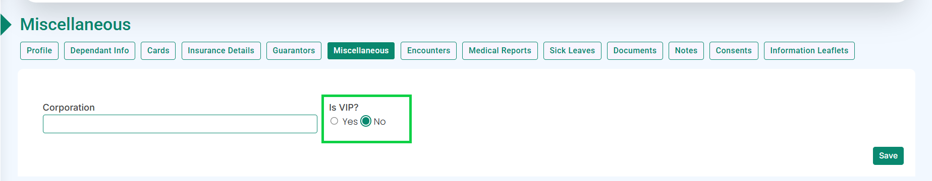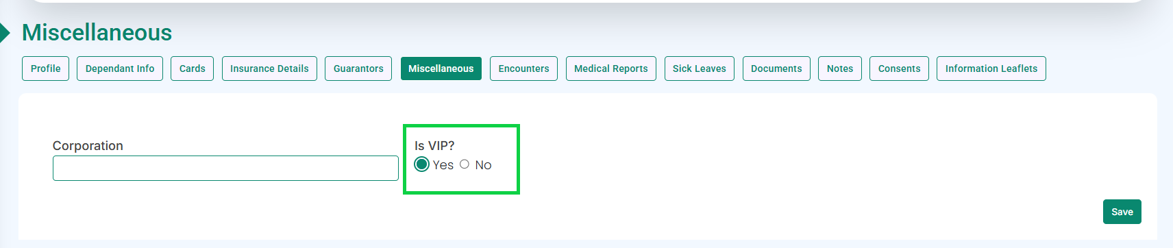 In the Miscellaneous tab, go to the VIP option and select Yes, as highlighted below.