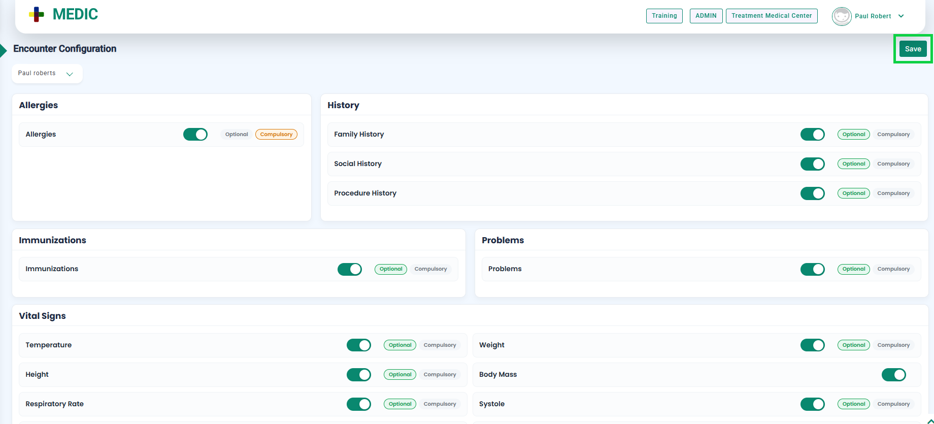 - Once the Compulsory button is clicked, click the Save button located at the top-right corner of the screen, as shown in the image below.