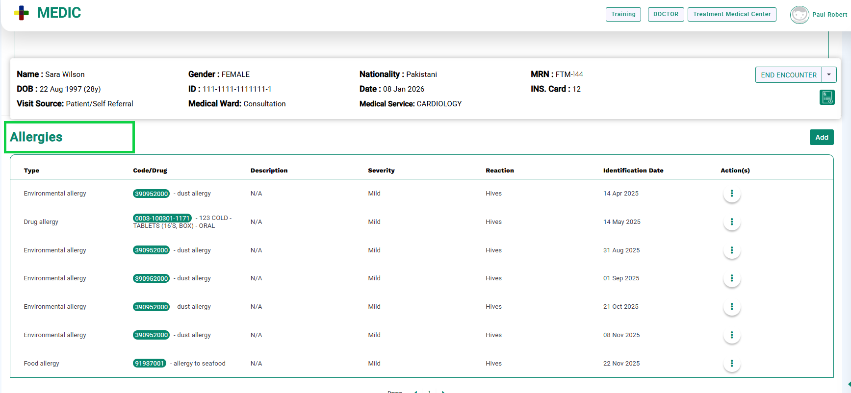 - During the encounter, compulsory fields will be displayed with an asterisk (*), as shown below.