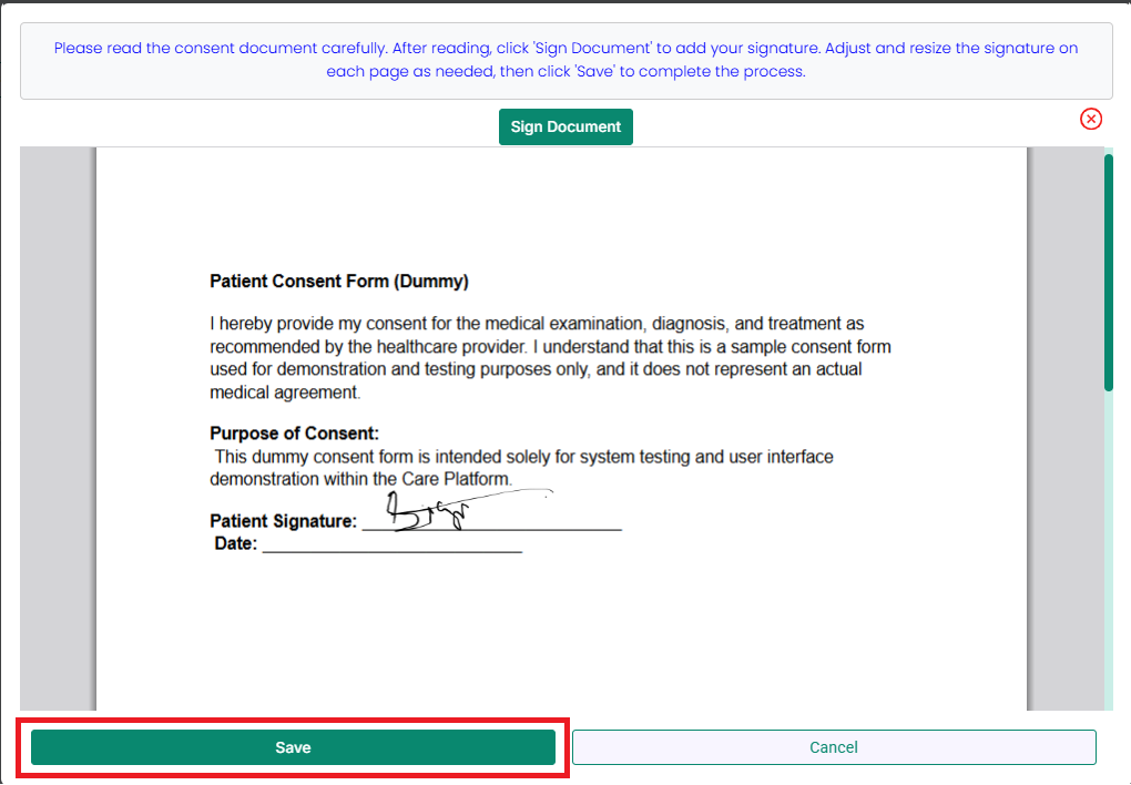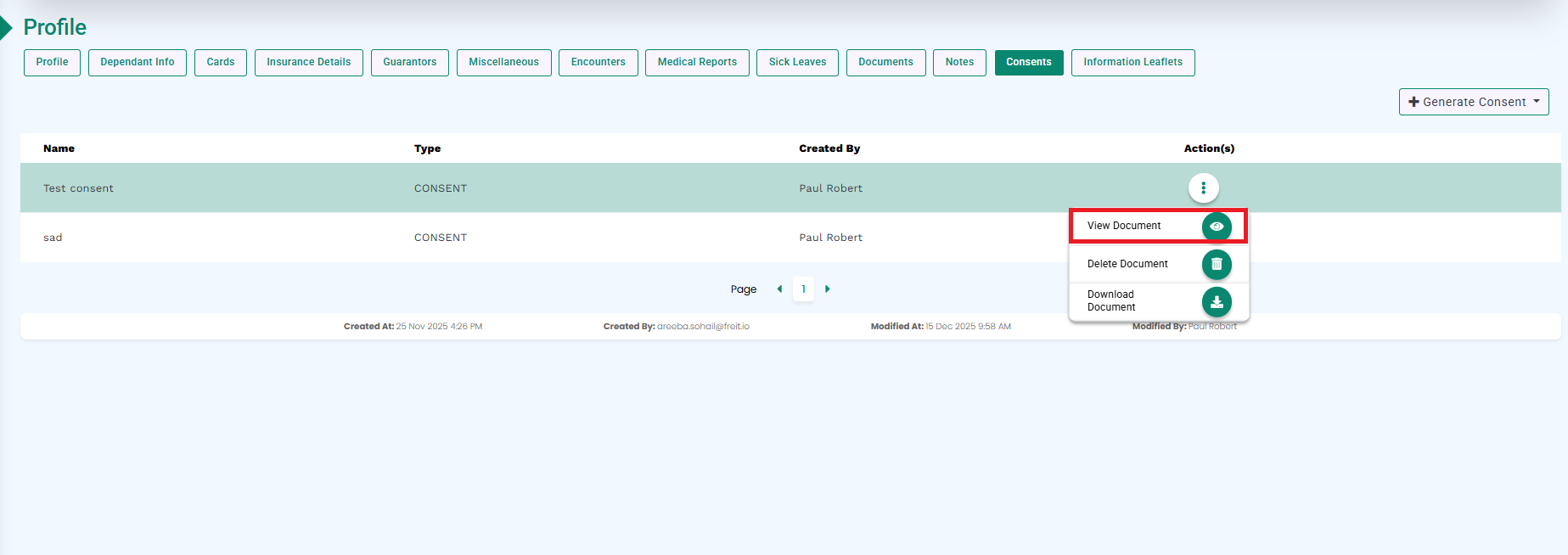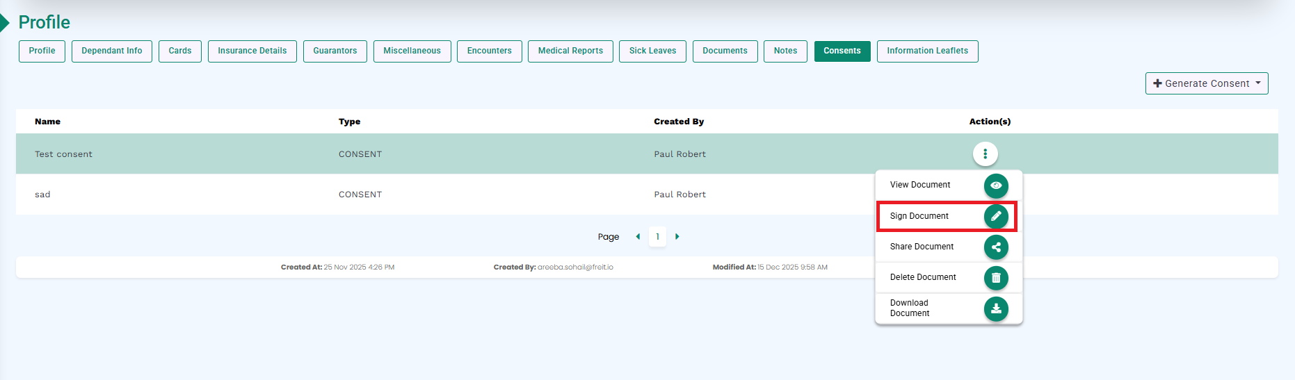 - Add the consent document to the patient profile as described in the How to add consents in Patient’s Profile section.