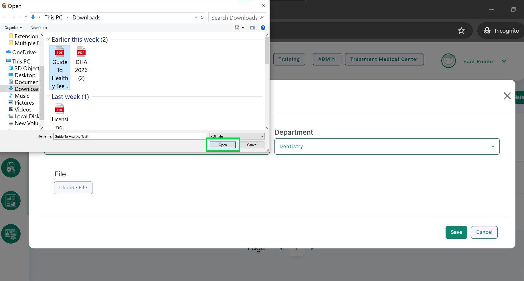 - Select the required file from your system and click the Open button, as highlighted in the image below.