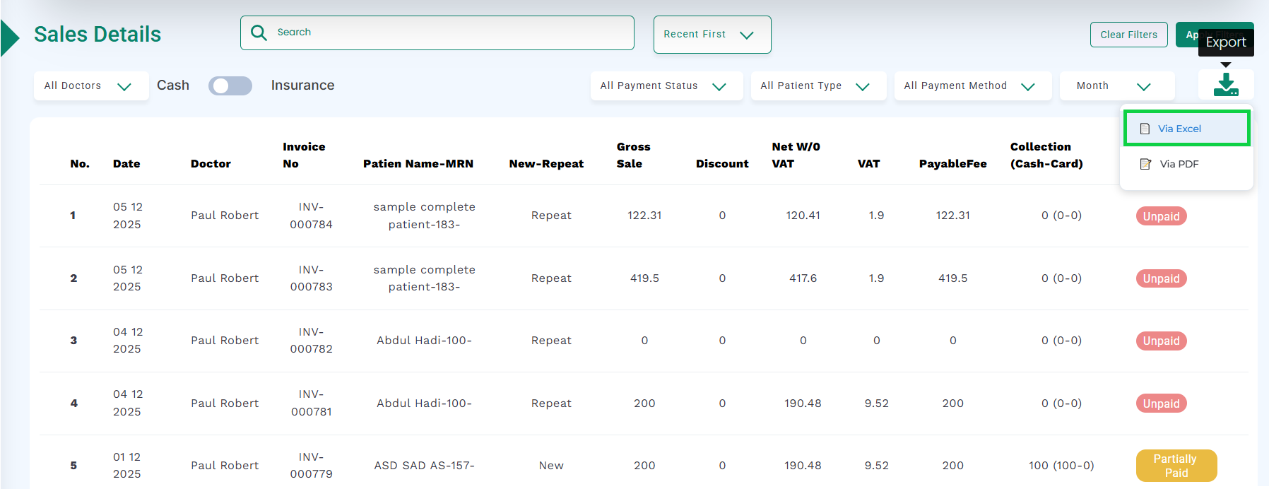 a ) To download the report in excel format, click the “Via Excel” button, as highlighted in the below image.