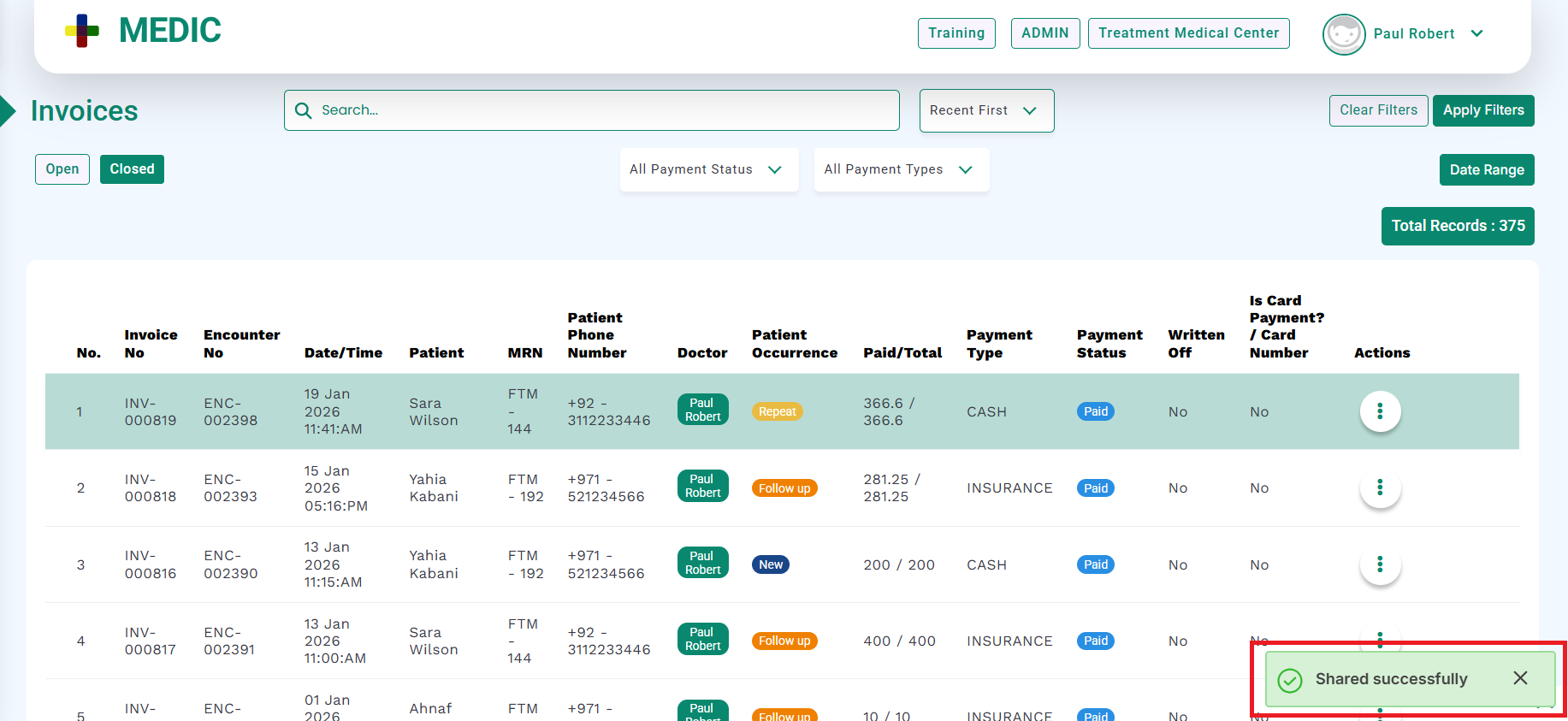 A confirmation popup will appear at the bottom-right corner of the screen indicating that the receipt has been shared successfully, as shown in the image below.