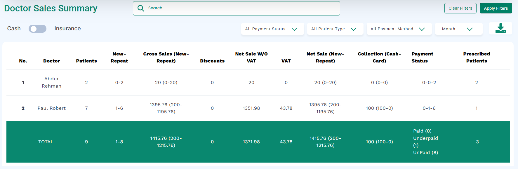 - The medic will take the users to the Doctor Sales Summary as shown below.