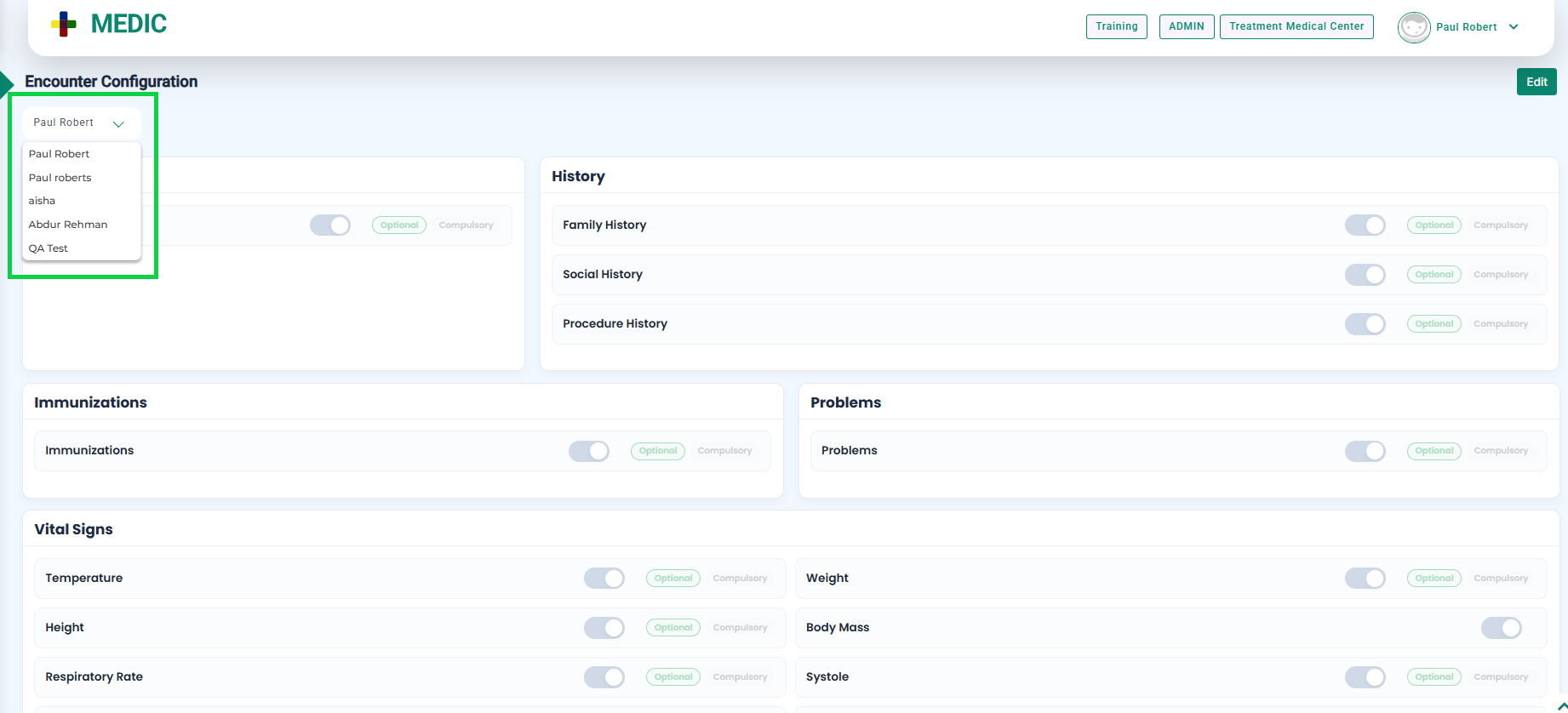 - Select the doctor for whom you want to configure the encounter by clicking the highlighted button.